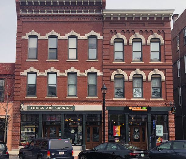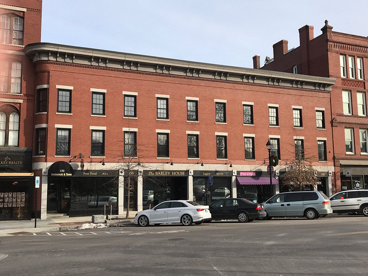 The Stickney Block at 122-132 North Main Street whose ground floor tenants include The Crust and Crumb, and the Barley House.